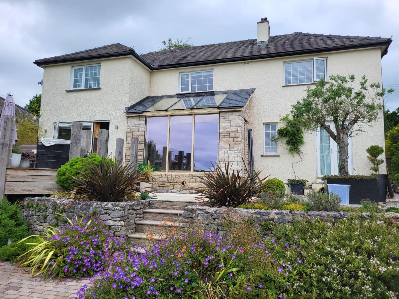 Coursed Portland walling was introduced where rhythm and order were required. Clean horizontal lines balanced the organic flow of the random stone, adding structure and visual clarity.
