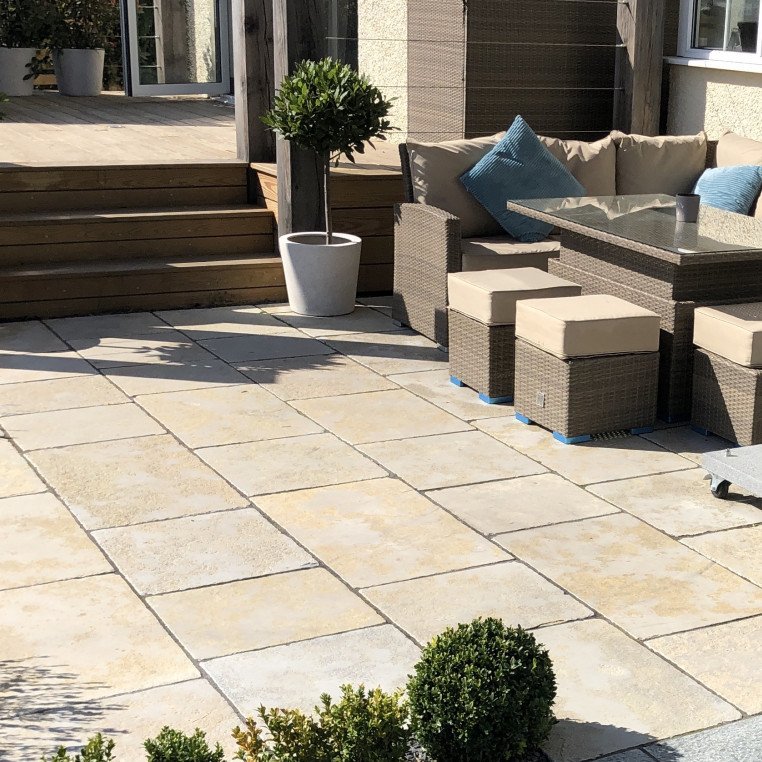 Unlike traditional Yorkstone, which can vary significantly in thickness and sizing, Trieste Limestone paving is produced with modern landscaping requirements in mind. Each piece is calibrated to a consistent thickness, allowing for easier laying and improved bedding accuracy.